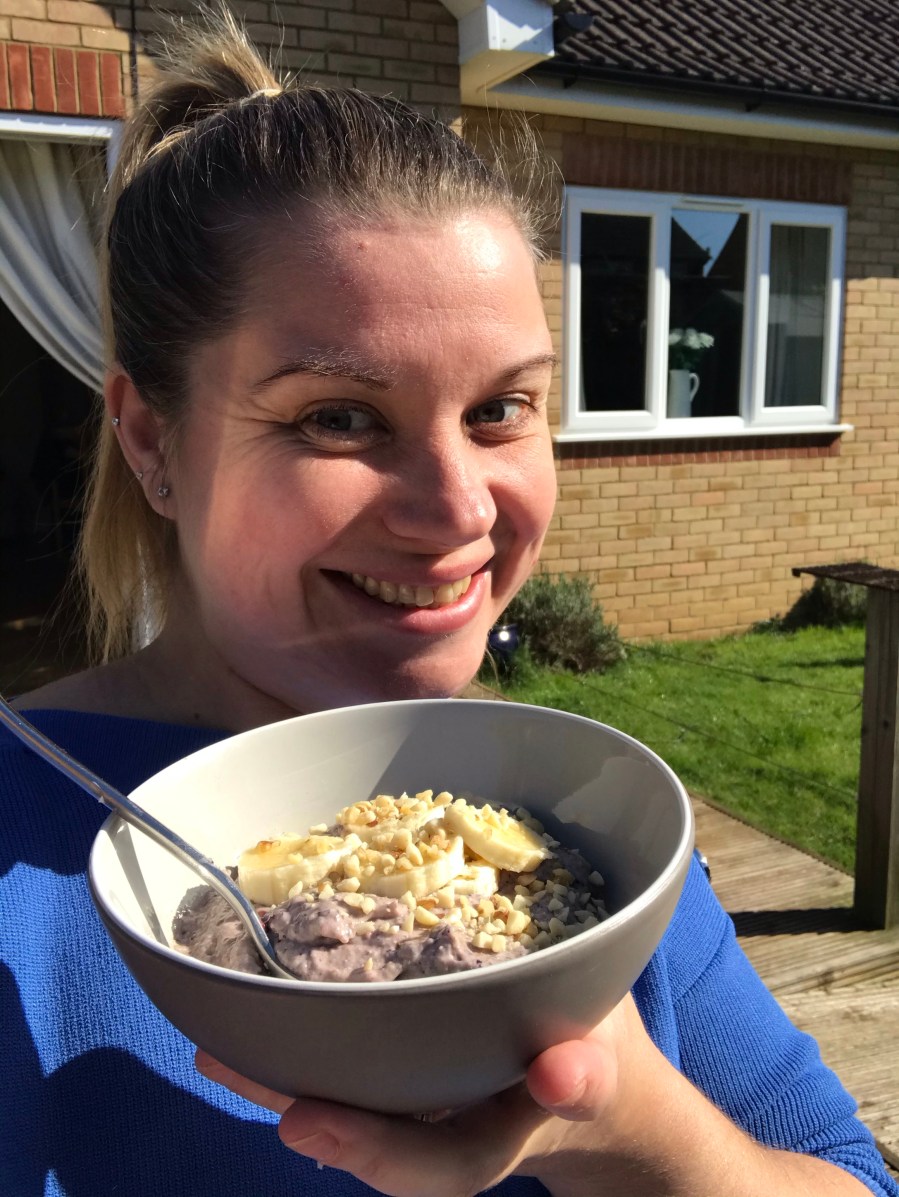 Pop the chopped banana on top & sprinkle over the nuts